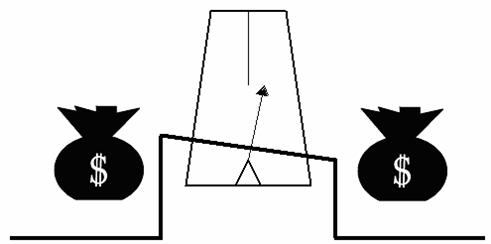 Prin urmare, costul net al situatiei in care se permite acestei unitati sa continue sa polueze este reprezentat de sageata trasata cu linie intrerupta. Daca se insumeaza costurile similare ale unor astfel de unitati de poluare cuprinse intre Q3 si Q1, rezultatul este reprezentat de aria hasurata triunghiulara, care exprima pierderea suportata de societate lasand poluarea patronala sa continue la nivelul sau necontrolat Q1, in loc s-o limiteze la Q3.