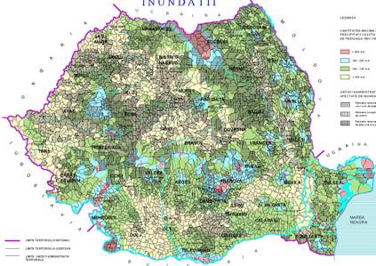 Cantitatea maxima de precipitatii cazuta in 24 ore in perioada 1901-1997 Peste 200 mm 150 - 200 mm 100-150 mm Sub 100 mm Unitati administrativ teritoriale afectate de inundatii