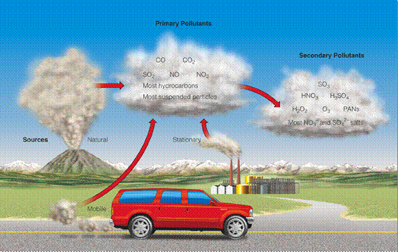 Fig. 2. Ilustrarea surselor de poluati atmosferici si a tipurilor de poluanti atmosferici .