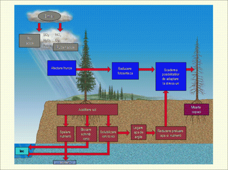 Fig.7. Afectarea solului si a plantelor ca urmare a precipitatiilor acide si a depunerilor acide