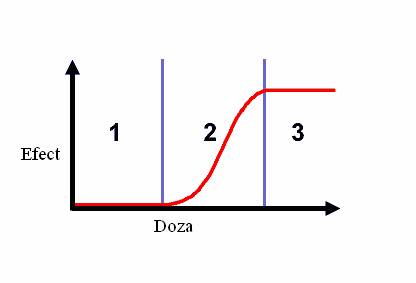 Toxicologia se bazeaza pe faptul ca exista o relatie intre reactia la toxic (raspuns) si cantitatea de toxic la care a fost supus organismul (doza). Un principiu importanta al acestei relatii este ca in majoritatea cazurilor exista o valoare a dozei sub care nu se inregistreaza nici un raspuns sau nu poate fi masurat. Un al doilea principiu important este acela ca daca valoarea dozei este maxima, orice crestere peste aceasta nu determina o cresterea a efectului (fig. 5)