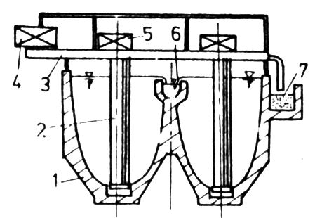 Miscarea circulara care se realizeaza este mentinuta si la debite mici cu ajutorul unor palete fixate rigid de un tub mobil care este actionat intr-o miscare de rotatie de un electromotor.
