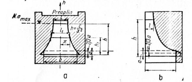 Din aceasta expresie se determina de obicei H1. Aceasta dimensiune nu trebuie sa fie prea mare deoarece conduce la o adancime de fundare neeconomica si la greutati in executie.