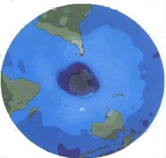 O mare gaura in ozon (ilustrata la mijloc cu albastru inchis si gri) se dezvolta deasupra Antarticii, timp de cateva luni, in fiecare an.