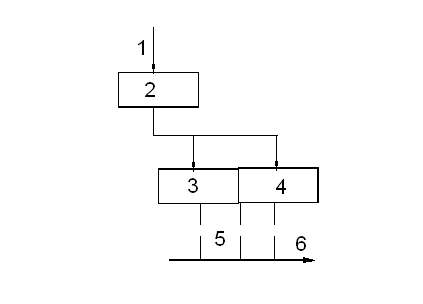1 - influent (ape uzate); 2 - treapta de epurare mecanica; 3 - camp de infiltratie; 4 - camp de irigatie; 5 - ape de drenaj; 6 - emisar.