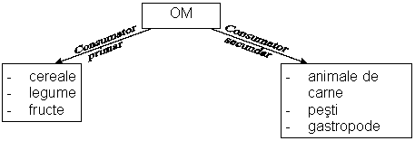 Cat priveste omul si pozitia lui pe lantul trofic situatia este dependenta de tipul de hrana pe care‑l consuma situandu‑se pe nivelul trofic al fitofagilor sau al zoofagilor ca in figura 14.