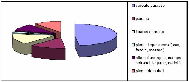 Fig. 1. Structura culturilor de camp din Rezervatia Biosferei Delta Dunarii (RBDD)
