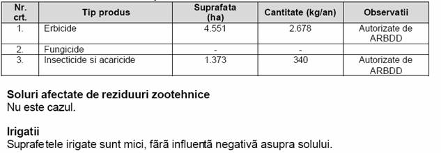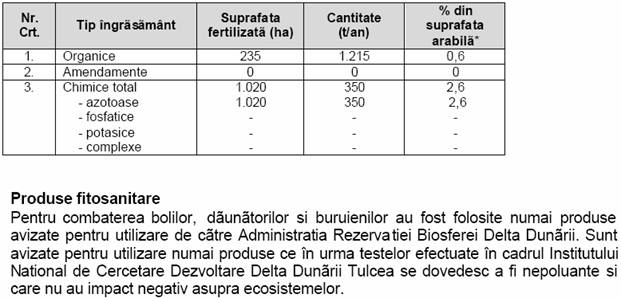 Tabel 1. Utilizarea ingrasamintelor in perimetrul RBDD