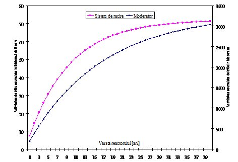 In tabelul 4.3.1 este prezentata cantitatea de C-14 produsa de catre un reactor CANDU tipic de 600MW(e), din care se observa ca ponderea apartine moderatorului.