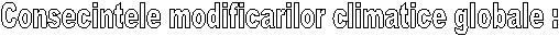 - cresterea temperaturii medii in mai mare masura spre zonele polare decat in cele tropicale poate produce o deplasare a zonelor climatice . La latitudini medii de 45o - 60o acesta poate fi cuprinsa intre 150 si 550 km. Tot aici este posibila si deplasarea etajelor climatice cu consecinte grave si greu de imaginat asupra ecosistemelor naturale si agricole