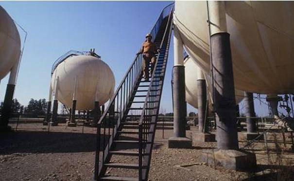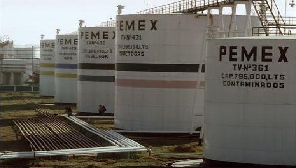 Rezervoarele uriase de petrol ale firmei Pemex atesta importanta economica a produselor petroliere din Mexic.