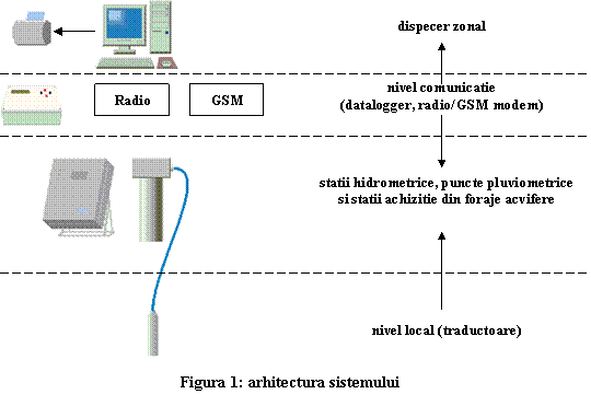 Sistemul automat de monitorizare al unui bazin hidrografic (in particular bazinul Somesul Mic), este un sistem distribuit pe mai multe nivele, dupa cum se vede si in schema-bloc de principiu prezentata in fig.1.