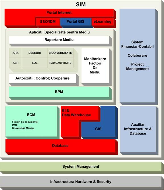 Pentru sporirea eficientei si diminuarea riscurilor, dincolo de aspectele specifice, aceste functionalitati vor fi implementate folosind un framework comun tuturor aplicatiilor de mediu, maximizind componenta de configurare a produselor standard utilizate in infrastructura si recurgind la customizari numai acolo unde este absolut necesar.