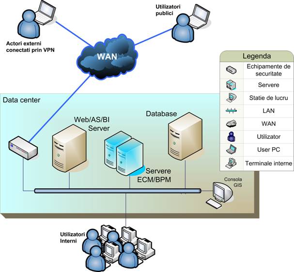 Arhitectura sistemului informatic se bazeaza pe accesarea sistemului in tehnologie web - fie Intranet, fie Internet.
