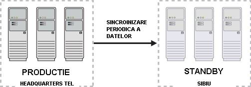 Mecanismul preferat pentru sincronizare datelor intre centru si DR este cel de replicare la nivel fizic (intre unitatile de stocare centralizare existente intre cele doua centre). In acest context trebuie avute in vedere urmatoarele valori pentru RTO (recovery time objective) si RPO (recovery point objective):