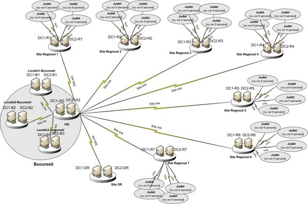 In locatiile judetene nu vor exista servere. Toate locatiile regionale se vor conecta la HQ prin intermediul VPN. Locatiile din judete se vor conecta la locatiile regionale in acelasi mod.