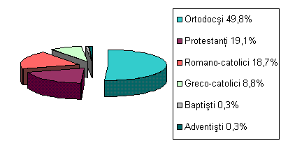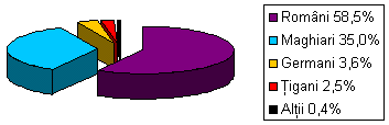 ♣ Populatia municipiului este majoritara de nationalitate romana, in proportie de 58,5 %, urmata apoi de cea maghiara cu 35,0 %.