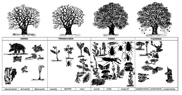 Fig. 6-83. Aspecte sugestive pentru ilustrarea schimbarilor la nivelul biocenozelor (ritmicitatea sezoniera) (dupa Fabian si Onaca, 1999)