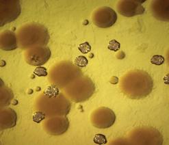 c) Bacteriil in formatiuni, cele mai semnificative sunt bacterii zoogleale - Fig.2.6 care apar mai ales in cazul incarcarilor organice mari unde se inregistreaza, la inceput, deficit de oxigen. Privita la microscop biomasa care contine aceste formatii zoogleale, apare dezlanata, lichidul este plin de bacterii libere, iar cele in ingramadiri sunt putine si predomina unele bacterii filamentoase care determina umflarea namolului. Sunt formatiuni zoogleale subtiri, care apar la incarcari organice mari ; formatiuni zoogleale lobate, care apar la deficit de oxigen ; formatiuni zoogleale hemisferice si sferice care apar la cresterea brusca a incarcarii organice.