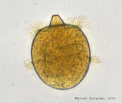 a) Ciliatele libere sunt foarte cosmopolite, nici o specie nu este caracteristica instalatiilor de epurare, totusi sunt unele forme, inicatoare eficientei epurarii apelor uzate, obtinut in treapta biologica. Sunt ciliate libere indicatoare unei epurari bune printe cele mai semnificative fiind: Aspidisca Lyceus - Fig 2.19 ,Aspidisca Costata, Paramecium Putrinum, Paramecium Bursaria, Liotonus Fascicola, Euplotes Charon , Didinium Nastusum - Fig 2.20 etc.