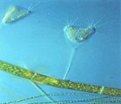 organice. Dintre fitoflageletele care traiesc in namolul activ avem: Chrysamoeba, Chromulina, Chilomonas-Fig.2.15, Cryptomonas, Polytoma, Euglena Virdis - Fig2.16,