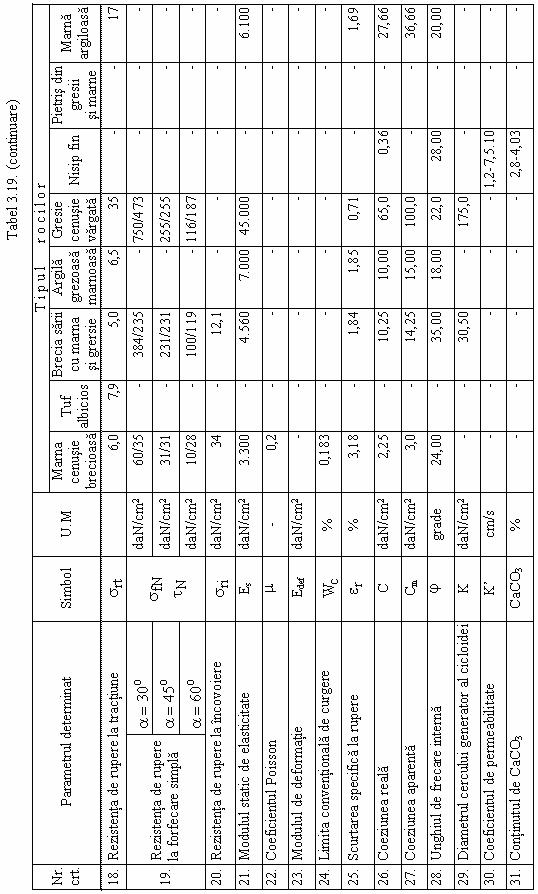 Tabel 3.20. Valorile medii ale caracteristicilor rocilor