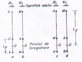 Fig. 6 Dispozitive potentiale si gradiente pentru carotajul de rezistivitate aparenta.