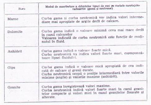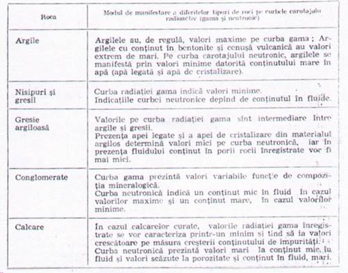 determinarea naturii litologice a stratelor traversate de sonda ;