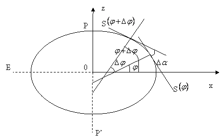 (normala la suprafata elipsoidului) unghiul de inclinare este egal cu