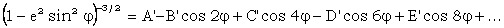 Efectuand calculele, si grupand in mod favorabil, sub forma unor coeficienti, valorile numerice exprimate si in functie de prima excentricitate numerica, notata cu e, obtinem: