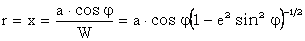 φ = 0º) este egal cu a (raza cercului ecuatorial sau semiaxa mare a elipsoidului, iar