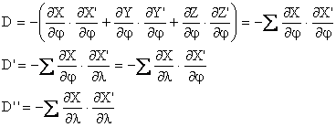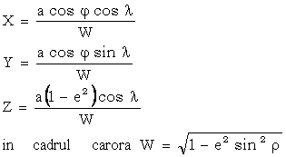 O acceptam ca fiind nula deoarece in cazul elipsoidului coordonata Z reprezinta practic altitudinea punctelor, iar in geodezie aceasta se determina, separat fata de planimetrie, numai prin nivelment trigonometric geodezic metoda care nu se poate aplica cu precizie la distante mai mari de 6 Km. In continuare, aceste expresii se prelucreaza tinand cont de:
