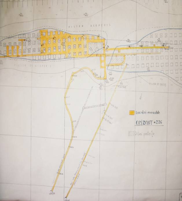 galerie de deschidere orizont + 226 aripa vestica, de la galeria transversala de deschidere pana la putul de aeraj;