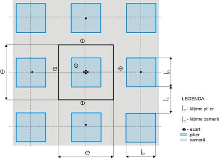 In cazul camerelor situate intre sirurile de pilieri cu dimensiuni diferite acestea se executa asimetric fata de ax.