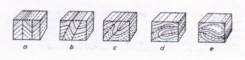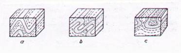 cute in evantai (fig.17 c) la care partea mijlocie a flancurilor prezinta inclinari convergente la anticlinale si divergente la sinclinale.