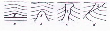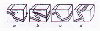 Fig. 28. Tipuri de falii in cazul stratelor inclinate.