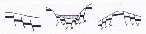- grabenul - grupari de falii paralele dispuse in trepte in care compartimentul central este coborat ( fig. 30) ;
