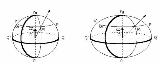 PN , PS , polul nord terestru, respectiv polul sud terestru, puncte in care axa polilor inteapa sfera (elipsoidul) ;