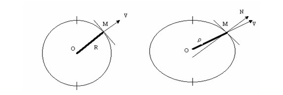 Verticala unui punct oarecare M este dreapta determinata de centrul O al sferei (elipsoidului) si punctul M (se aproximeaza faptul ca centrul sferei/elipsoidului coincide cu centrul de masa al Pamantului, numit si geocentru). Segmentul OM se numeste raza sferei terestre (R) pe sfera, respectiv raza vectoare geocentrica (r) pe elipsoid. Pe sectiunea meridiana a sferei terestre trasata prin punctul M (fig.7) se poate evidentia cu usurinta faptul ca verticala punctului M este perpendiculara la tangenta (TT') dusa la cercul meridian, si deci coincide cu normala. In fig.8, in care s-a reprezentat sectiunea meridiana a elipsoidului dusa prin punctul ales M, se poate observa ca raza vectoare geocentrica (OM = r) nu este perpendiculara pe tangenta TT' la elipsa meridiana. Pe elipsoid, normala (N) a unui punct nu coincide cu verticala sa (V).