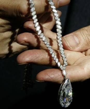 v Pear-shaped diamond necklace by Christie's - 5 milioane de dolari.