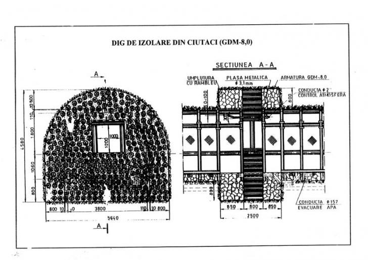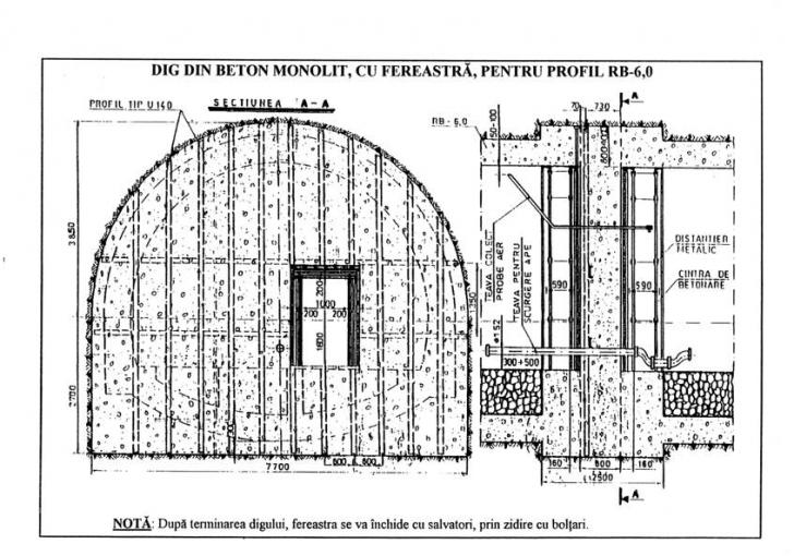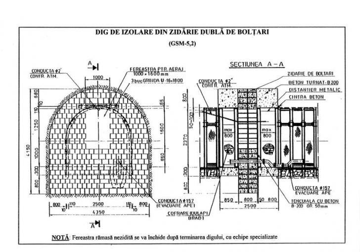 - cu diguri din beton cu o grosime de minimum 0,5 m incastrat in roca compacta pe tot perimetrul, pentru lucrarile care au fost inchise prin rapirea sustinerii sau parasire in starea in care se aflau.