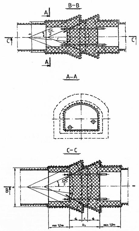 - pe ultimul tronson de 50 m spre suprafata se foloseste un material ce nu are tendinta de formare a boltilor, cu granulatia sub 100 mm (pietris, zgura de furnal, gresie, bucati de beton sau caramida) ;