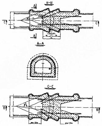 Fig. 4. Schema tehnologica de rambleiere a unei galerii cu rambleu uscat