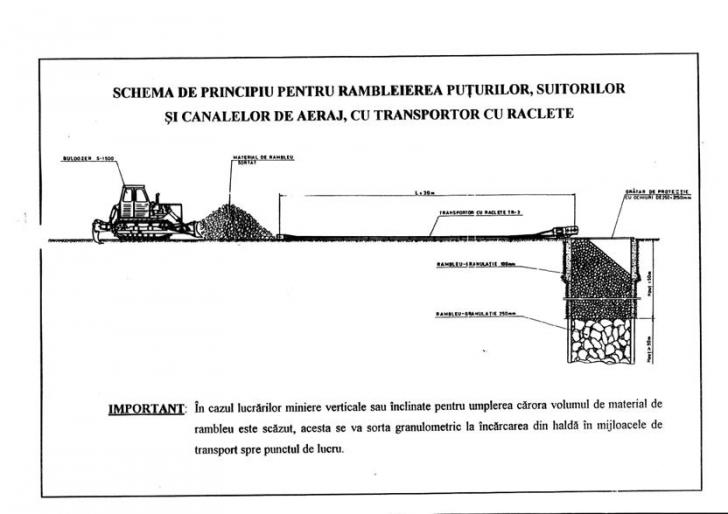 - indepartarea, daca din punct de vedere al securitatii este posibil, a amenajarilor din put care obtureaza sectiunea si impiedica caderea libera a materialului de rambleu ;