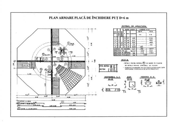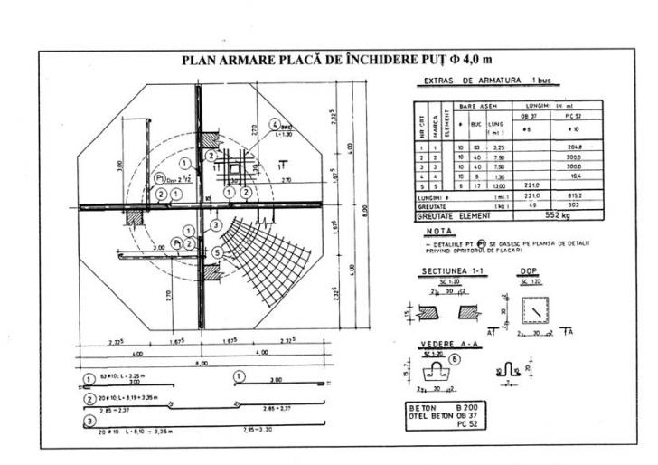 h)- modul de inchidere a putului cu placa din beton armat rezistenta la o sarcina de 32 KN/m2. Posibilitati de utilizare a sustinerii de la gura putului drept suprafata de sprijin a placii de inchidere ;