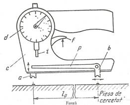 Extensometrul se compune din: corpul c, piciorul fix a, piciorul mobil b, - ce face corp comun cu parghia p, - ceasul comparator d si parghia de blocare f.