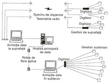Sistemul se bazeaza pe o retea de geofoane introduse in subteran, legate la o retea de calcul si de ascultare a zgomotelor produse de roca sau substanta minerala utila supusa la o stare de tensiune, figura 6.3.