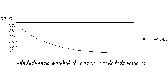 Figura 5.2. Variatia debitului de gaz transportat de o conducta cu cresterea sau scaderea lungimii aceseia.
