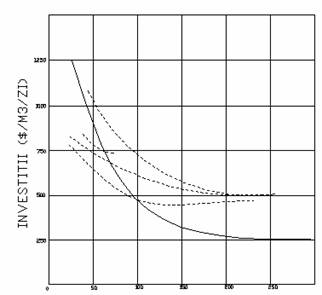 Fig. 3.12 Graficele de variatie a investitiilor unitare