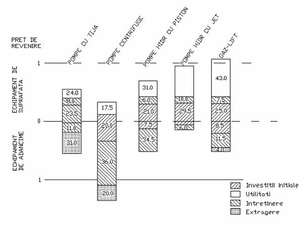 Mult mai sugestiva este prezentarea pretului de revenire tinand cont de principalele componente ale acestuia, atat pentru echipamentul de suprafata, cat si pentru cel de adancime (fig. 3.14).